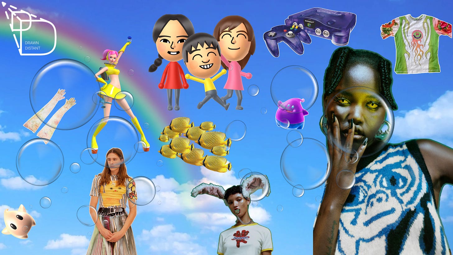 Meanwhile, brands like Chopova Lowena and Heaven By Marc Jacobs take the base of the Frutiger Aero aesthetic and infuse it with a punk perspective. This leans into these brands association with the “Harajuku girl,” a subculture in Japan that embraces the excitable aesthetics of neo-Japan. The Harajuku girl has evolved into today’s “weird girl,” adorned with many details of the Frutiger Aero aesthetic.