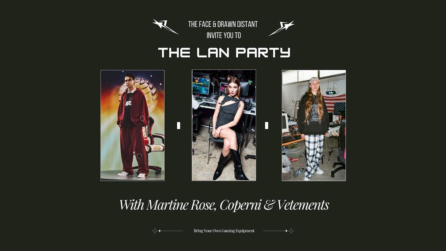 In the dim glow of cathode rays, players formed micro-societies. Someone always knew how to troubleshoot the modem. Someone always broke it. Rivalries, alliances, a dozen friends sharing bandwidth and banter, all within the four walls of a living room. It’s easy to see why fashion’s falling for it. The LAN party aesthetic is aggressively unglamorous: towers humming, cords snaking across the carpet, snack debris everywhere, niche jokes. But that’s exactly its allure. These messy environments provide inspiration to brands like Martine Rose, Coperni and Vetements that have always looked to the unexpected corners of culture for source material.